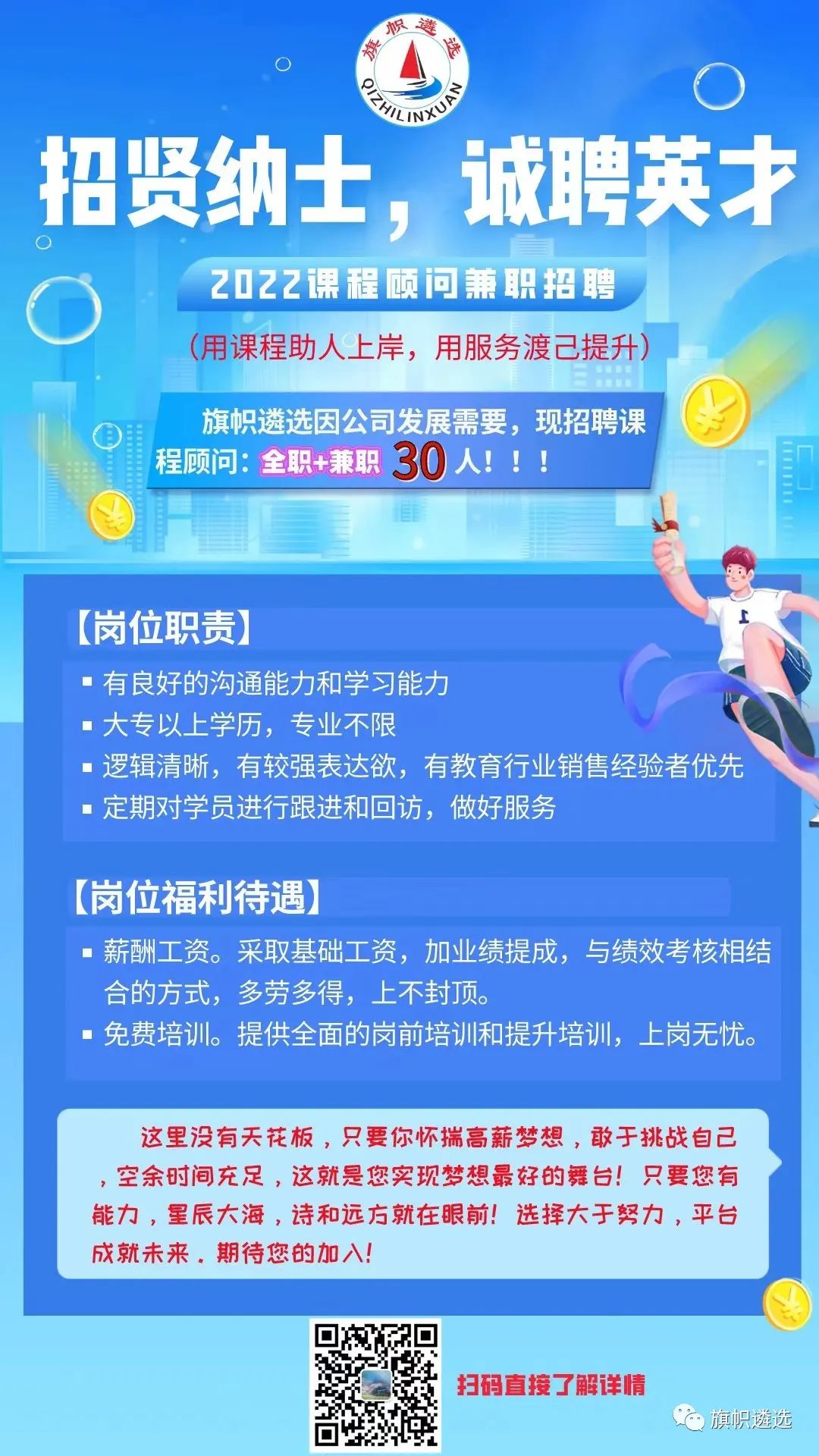 【招贤纳士,诚聘英才】旗帜春季兼职全职招聘来啦!